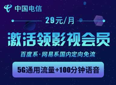 29元/月,5G通用流量+100分钟通话+每月视频会员任选