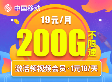 19元/月,40G专属流量+百款应用免流